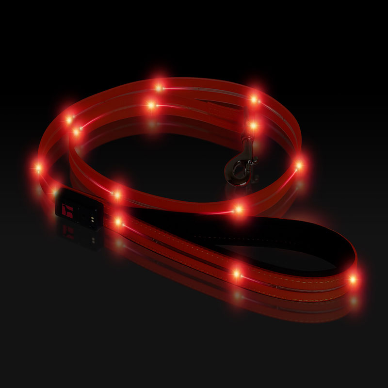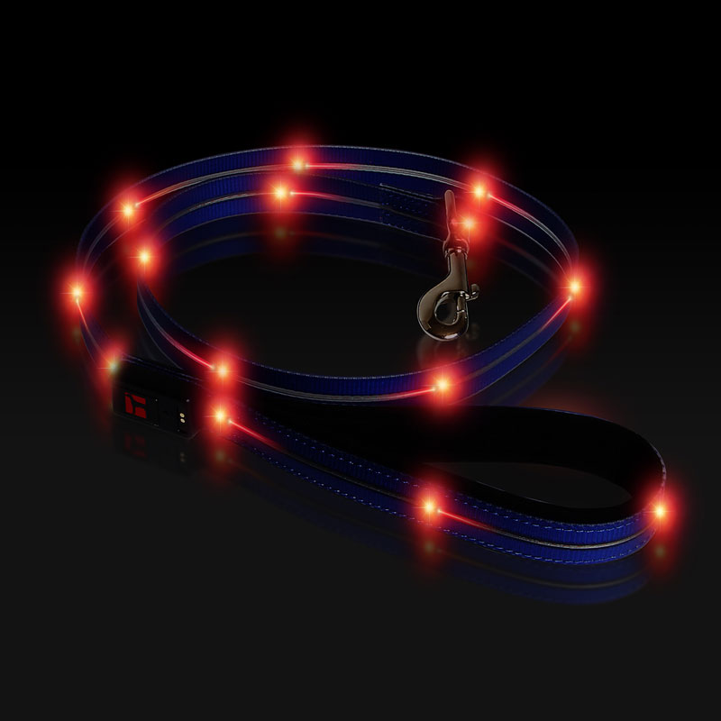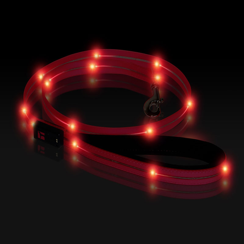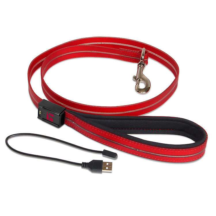 PVC webbing and battery are waterproof and easy to clean. Colourful LED lights run from 5 to 8 hours depending on multi-light function. USB rechargeable battery. Complete charge in approx. 3 hours using the simple magnetic USB charging cable.